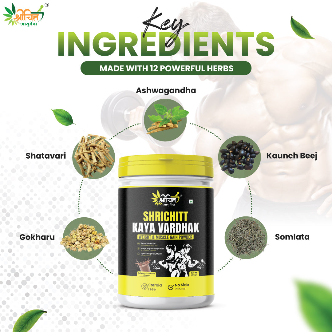 Are you struggling to gain weight or build muscle mass despite your best efforts? Shrichitt Kaya Vardhak is your natural solution. Formulated by Ayurveda experts, this potent weight and muscle gain powder is designed for those who want to see real results without compromising their health.
